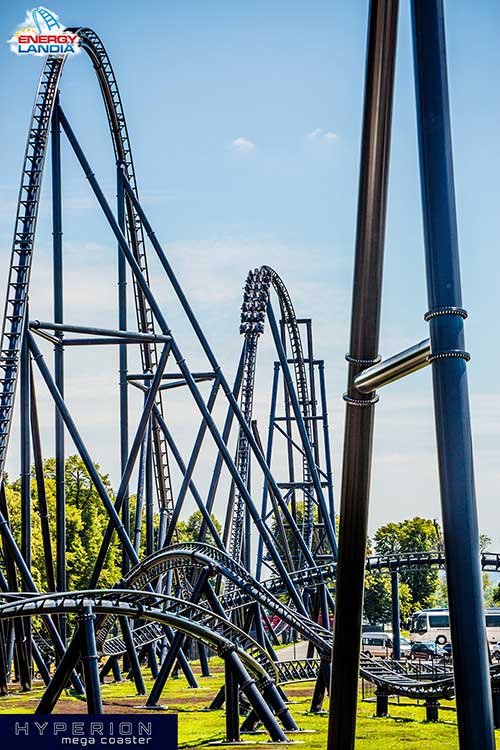 • Hyperion, which is the fastest and highest mega coaster in Europe with 85 degrees drop of 80 meters! The speed reaches 140 km/h!