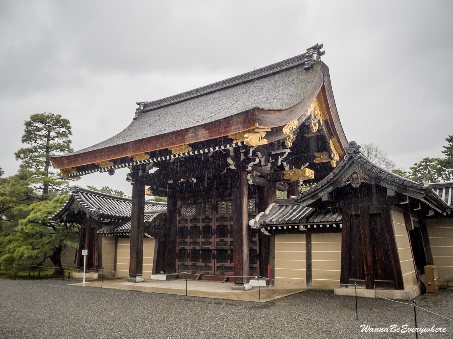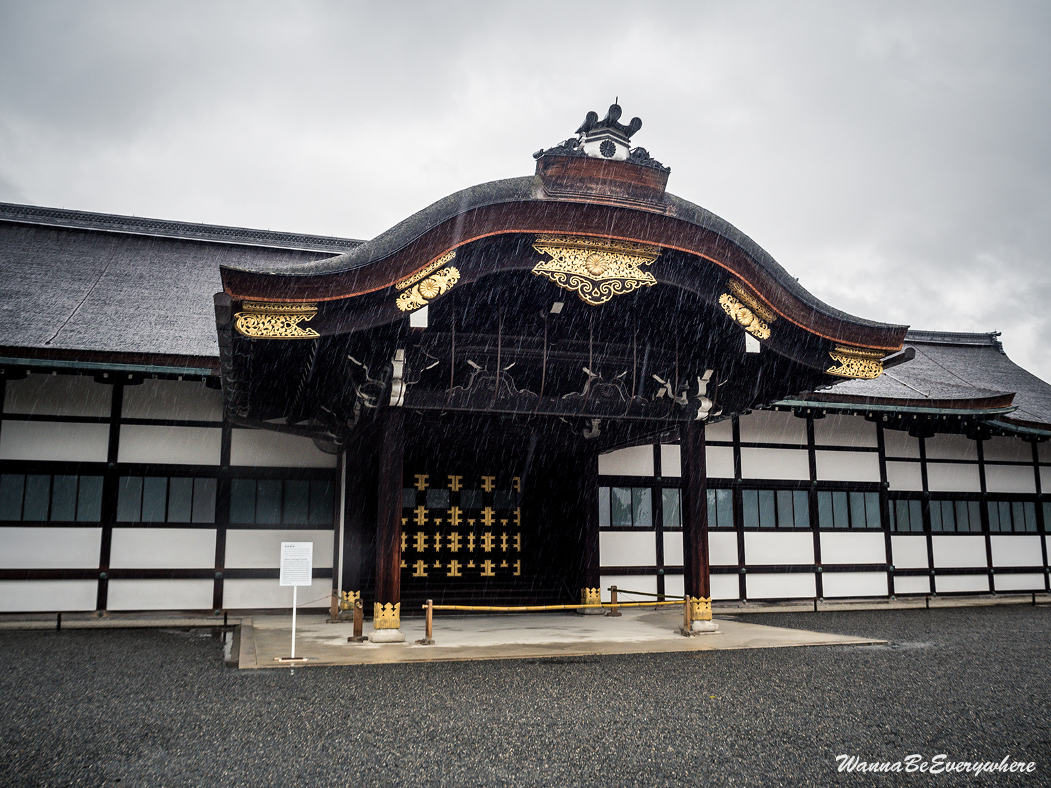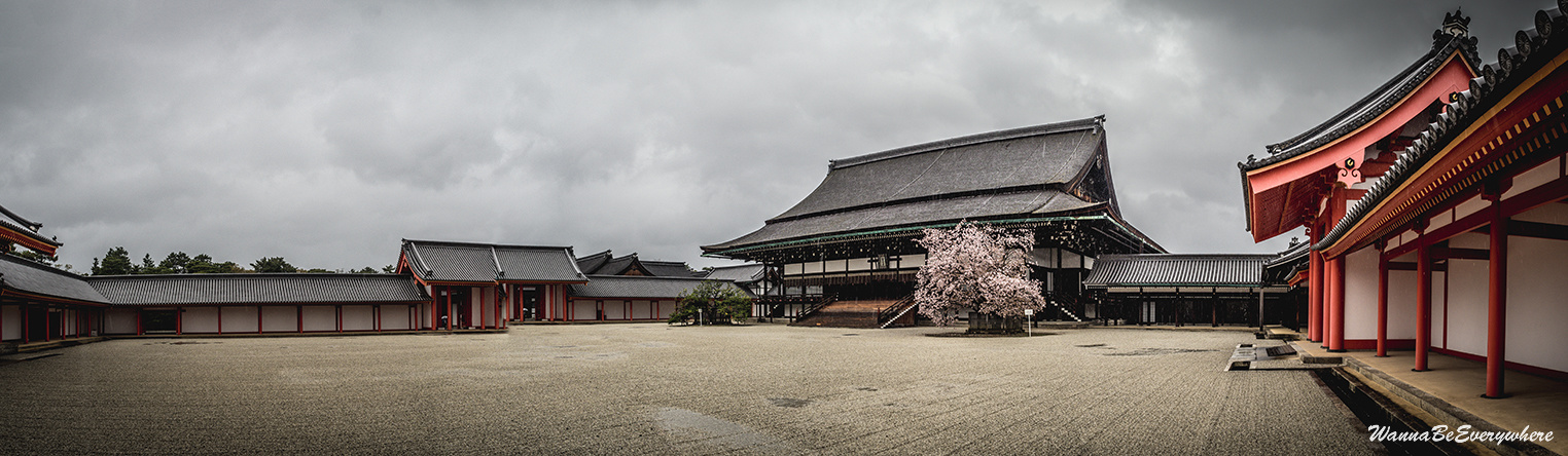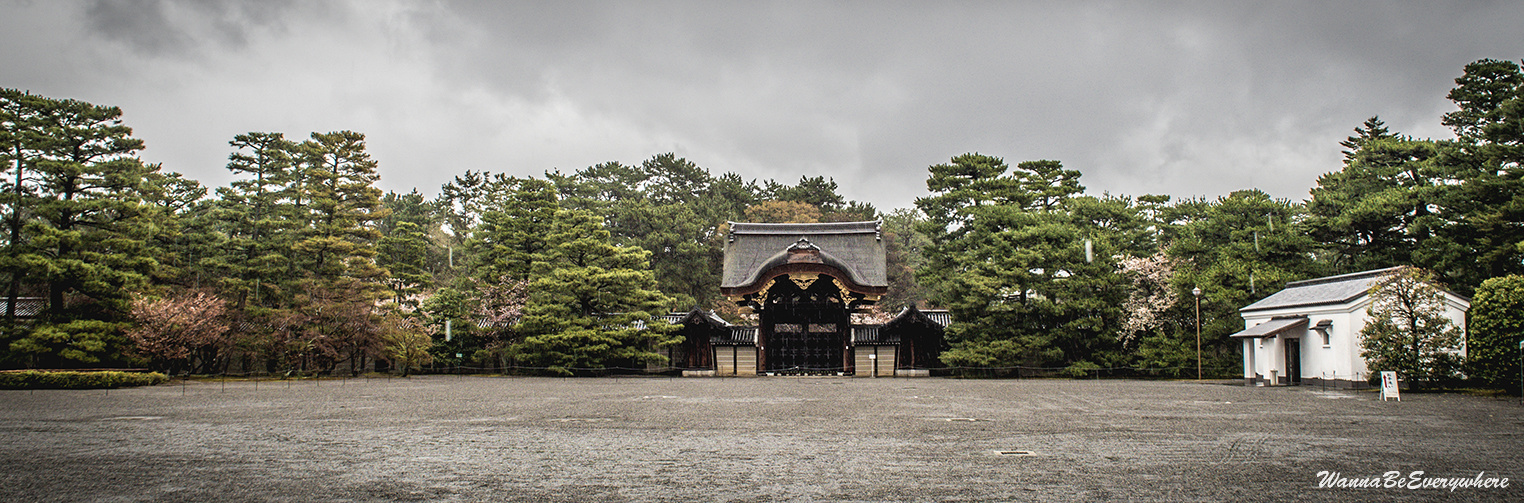 It used to be the residence of the Imperial Family until the capital was moved to Tokyo. It is located in the Kyōto Gyoen (Kyoto Imperial Park), which is a beautiful park to take a stroll. The park has a couple of other sights as well, like Sento Imperial Palace or a former residence of court nobles. So if you have time, definitely walk around. When I was there, I was unlucky, and before I reached the Imperial Palace, the only dry item on me was my shoes 🙂