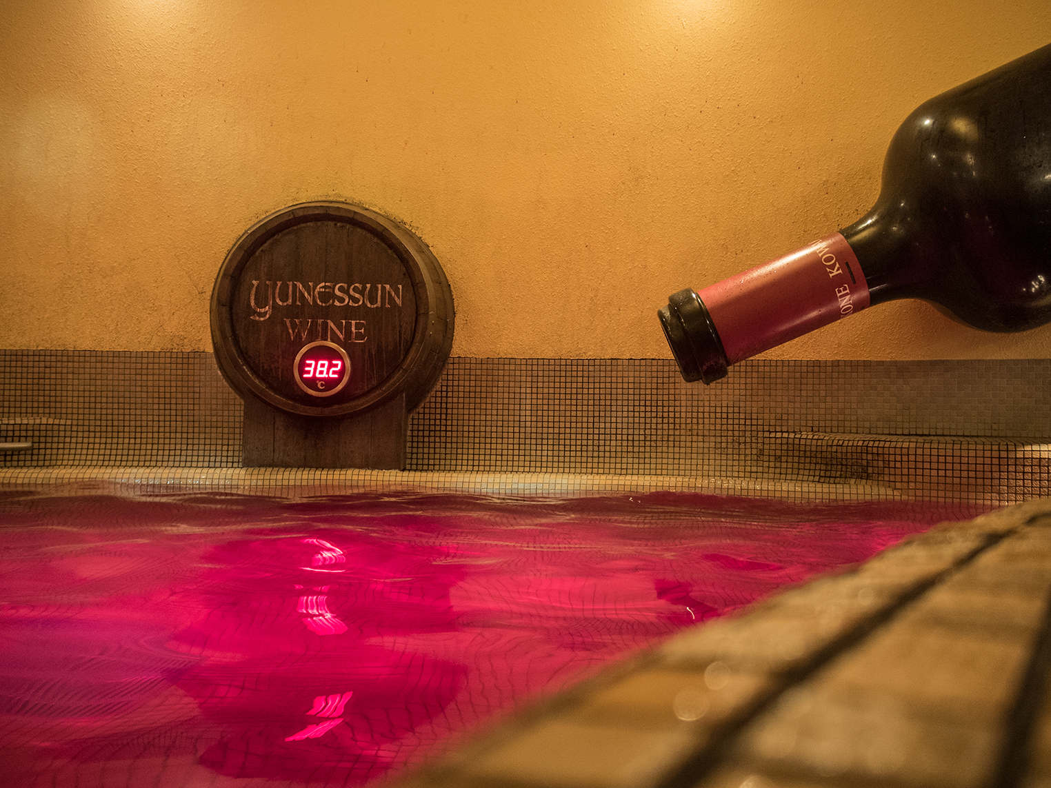 What is so different about this place? Well, does soaking in a hot spring made of wine sounds good? What about sake, coffee or green tea? Yep, in this resort you can sit in your favorite beverage hot spring 😀 Once in a while, employees pour some of the wine or other drink on you. Amazing experience!