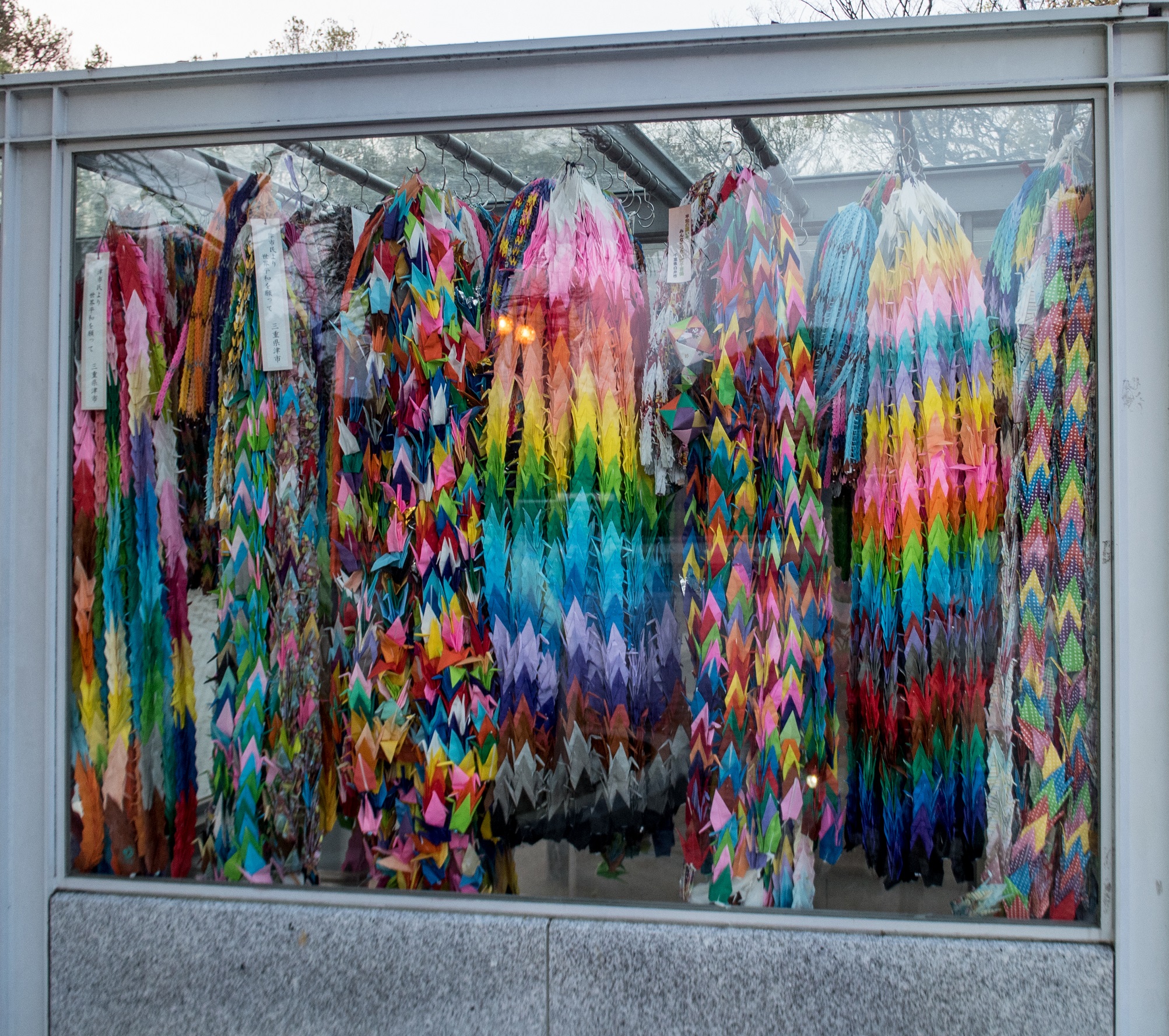 All those monuments are serving as a reminder for the generations to come while simultaneously paying respect to all the people who have lost their lives during the bombing and after. We have to remember that people were also dying long after the bomb exploded due to radiation. You might notice a lot of paper cranes. There is this saying in Japan that if you fold 1000 cranes, your wish will come true.
