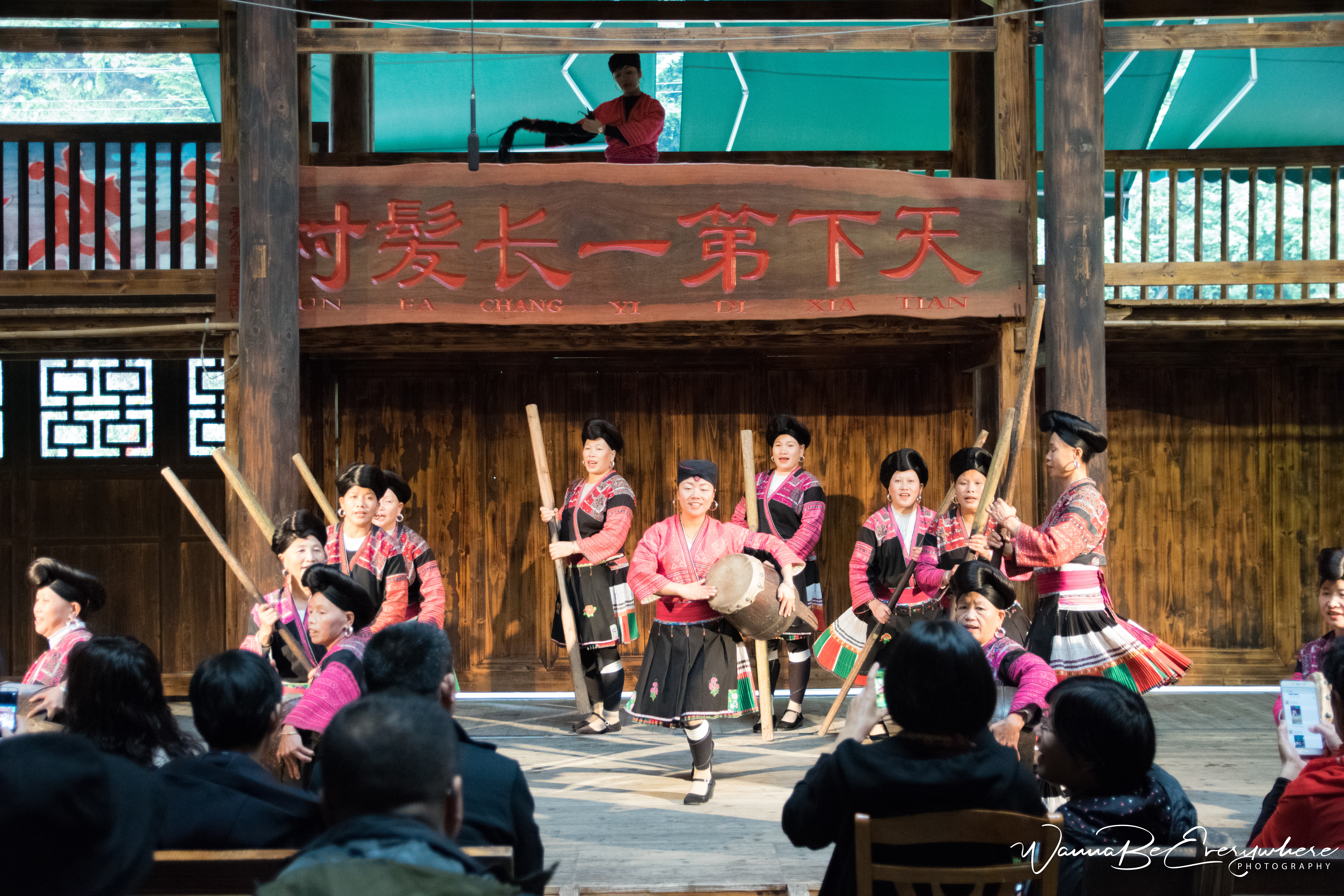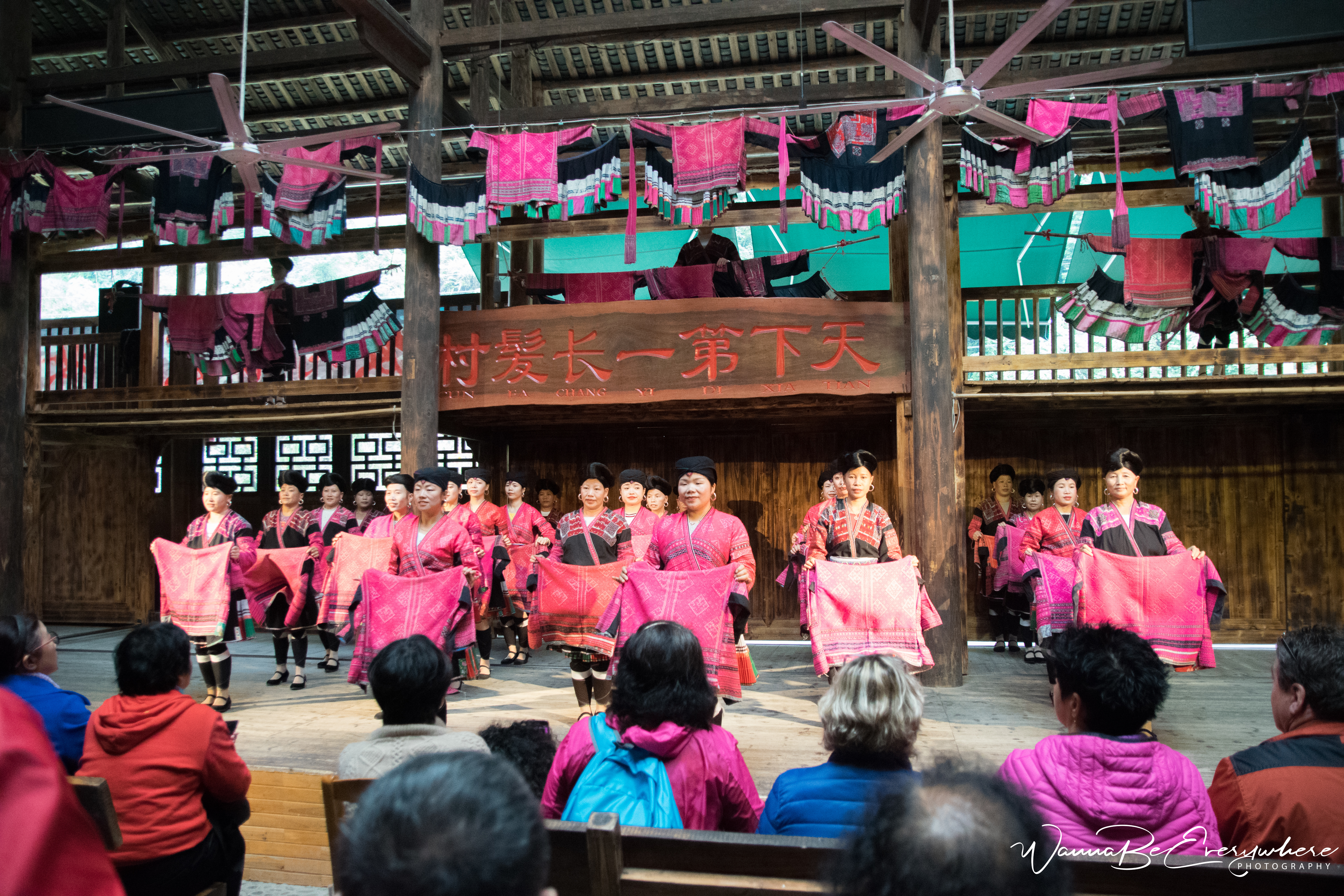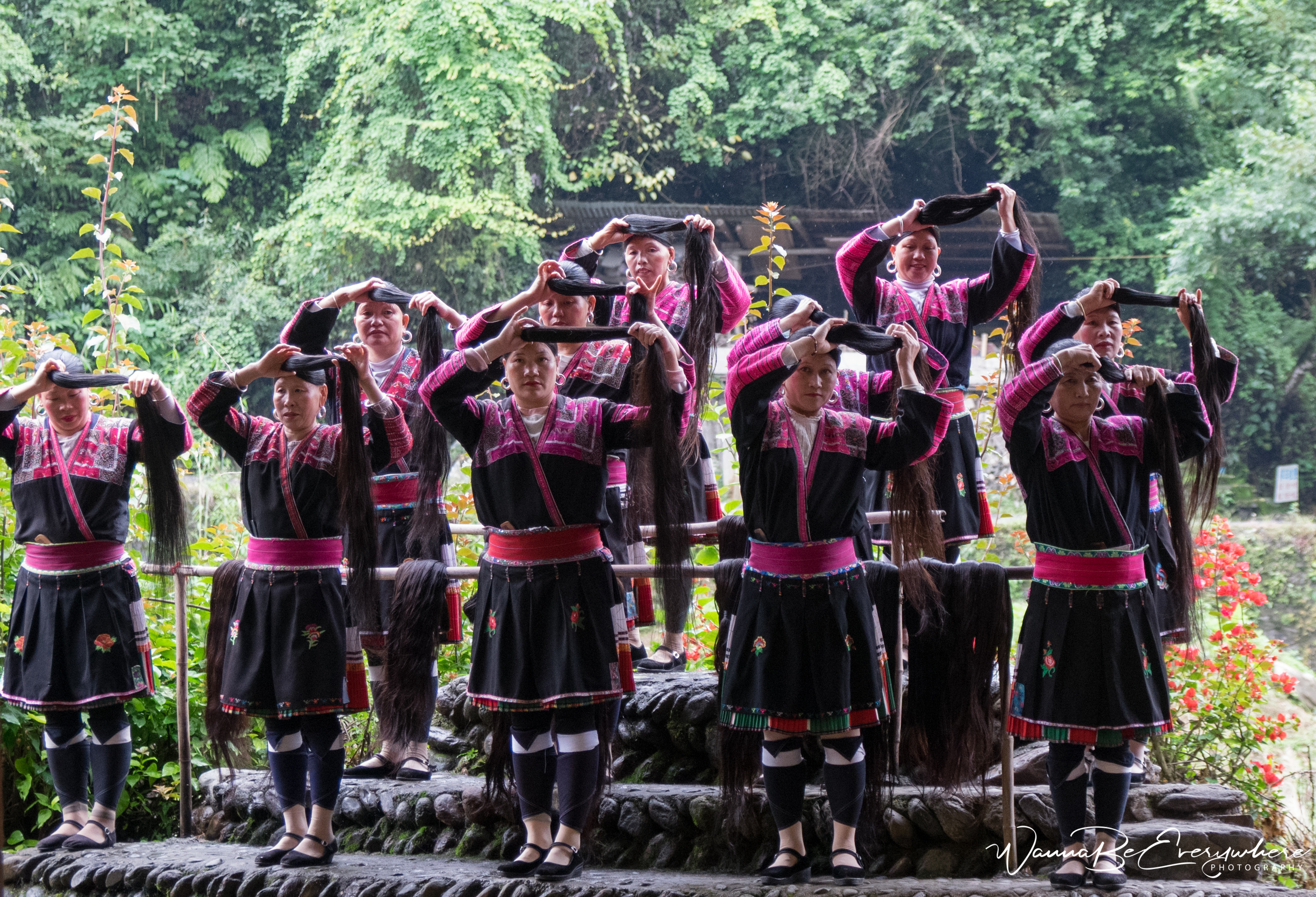 The terraces are also home to two different Chinese ethnic minorities, the Zhuang and the Yao people. The women there have the longest hair in the world! They cut it only once in their life when they are 18. The villages now organize a show where the girls explain how they take care of their hair and show different hairdo (single, married and widowed woman have different styles). Truth to be told, I was not the biggest fan of the show, but it was included in my trip and was a kind of experience. However, if I were to choose I would skip the show. Because all tourists with their humongous tablets wanted to take selfies with the ladies, it was crowded, and I could not see much from above all blinking cameras.
