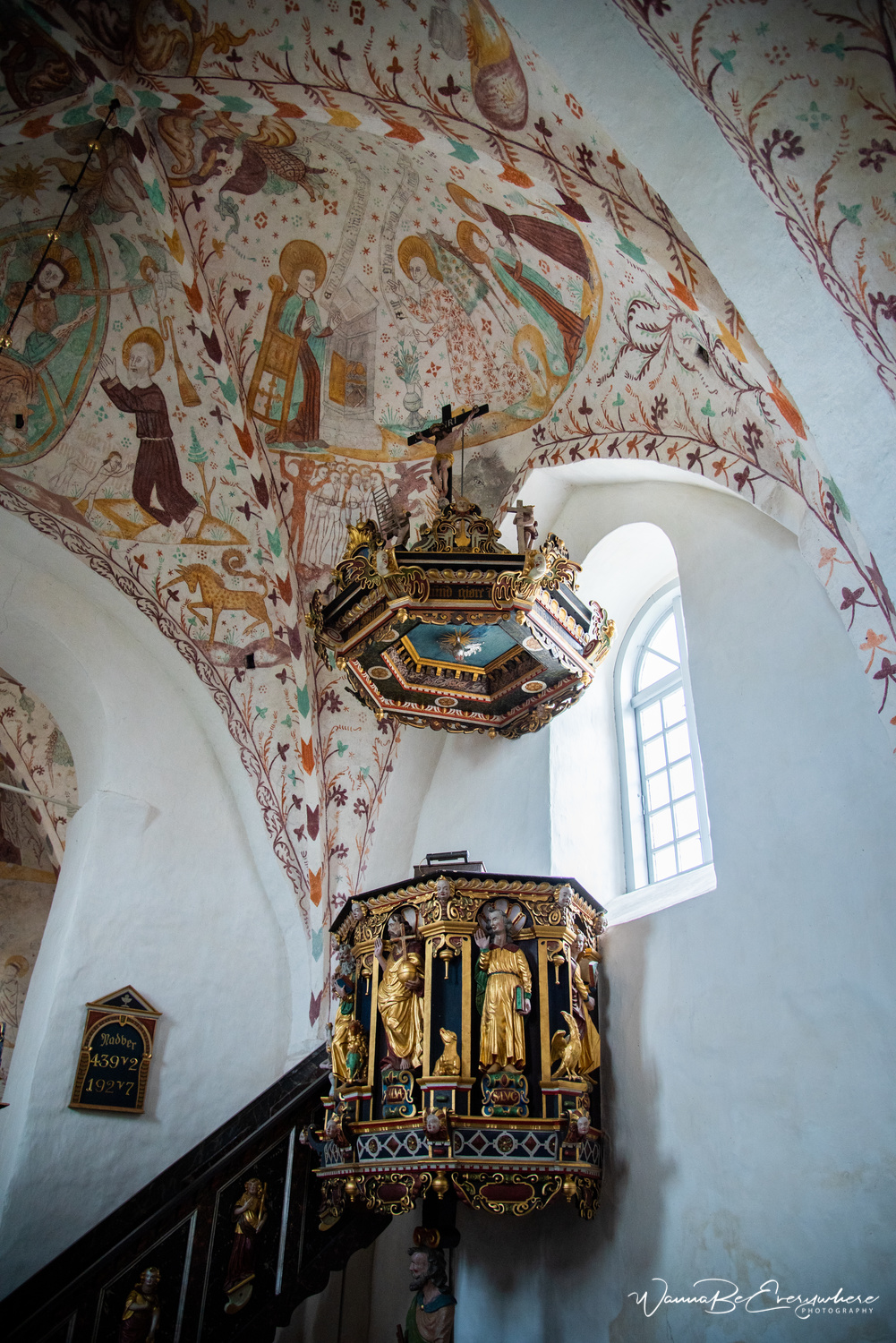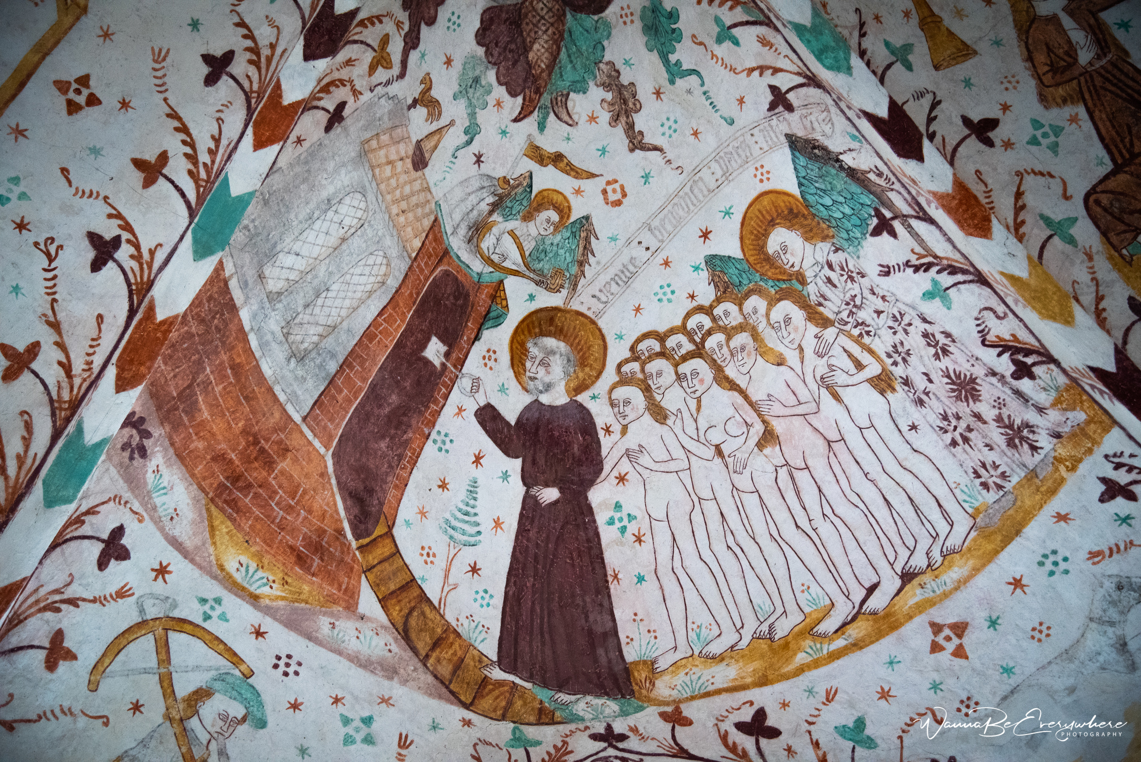 Elmelunde is the oldest church on the island of Møn. It dates back to 1085!! What is remarkable about that particular church are the frescoes (kalkmalerier) from the 15th century. The frescos depict scenes from the Bible and daily life.