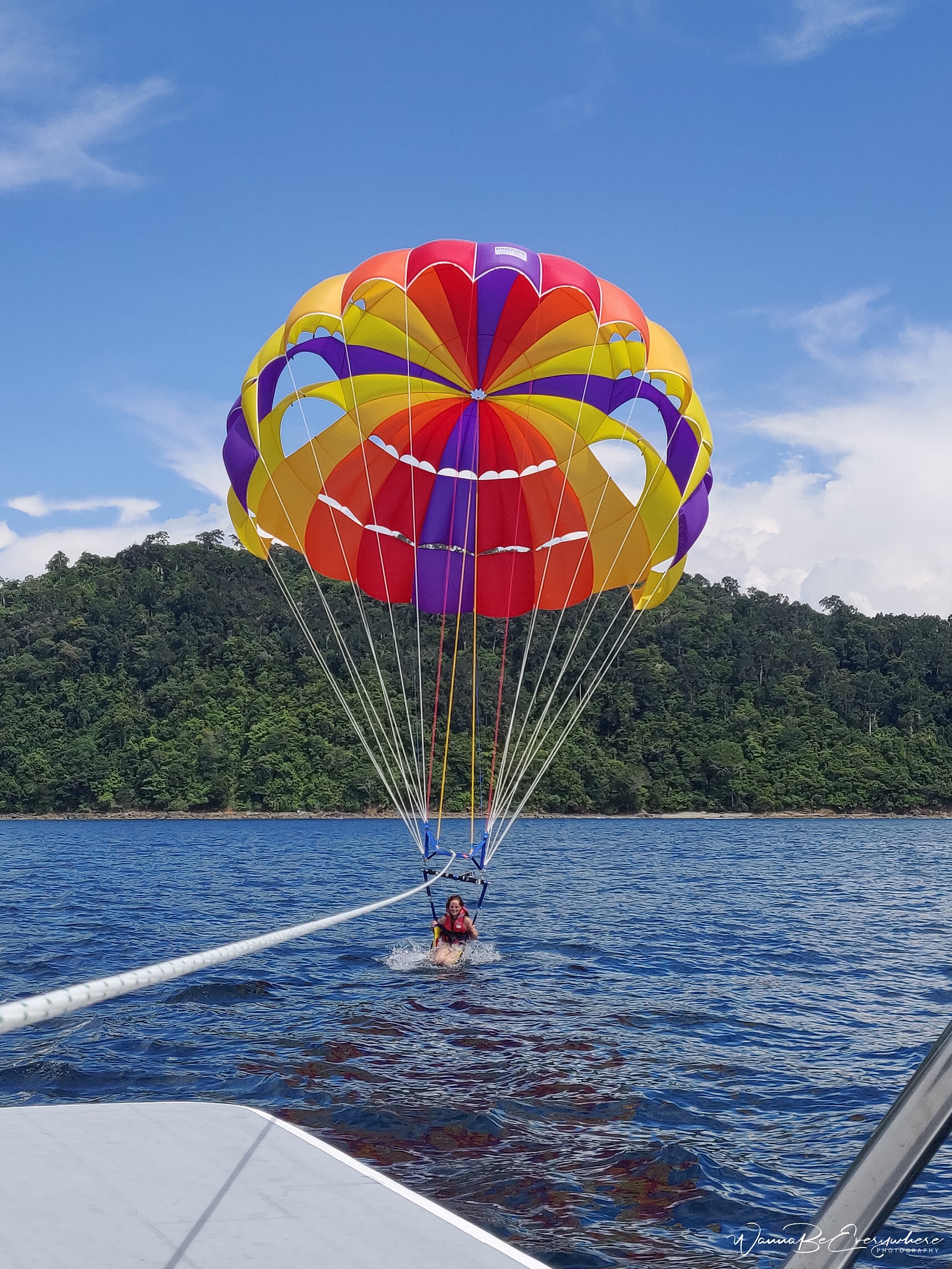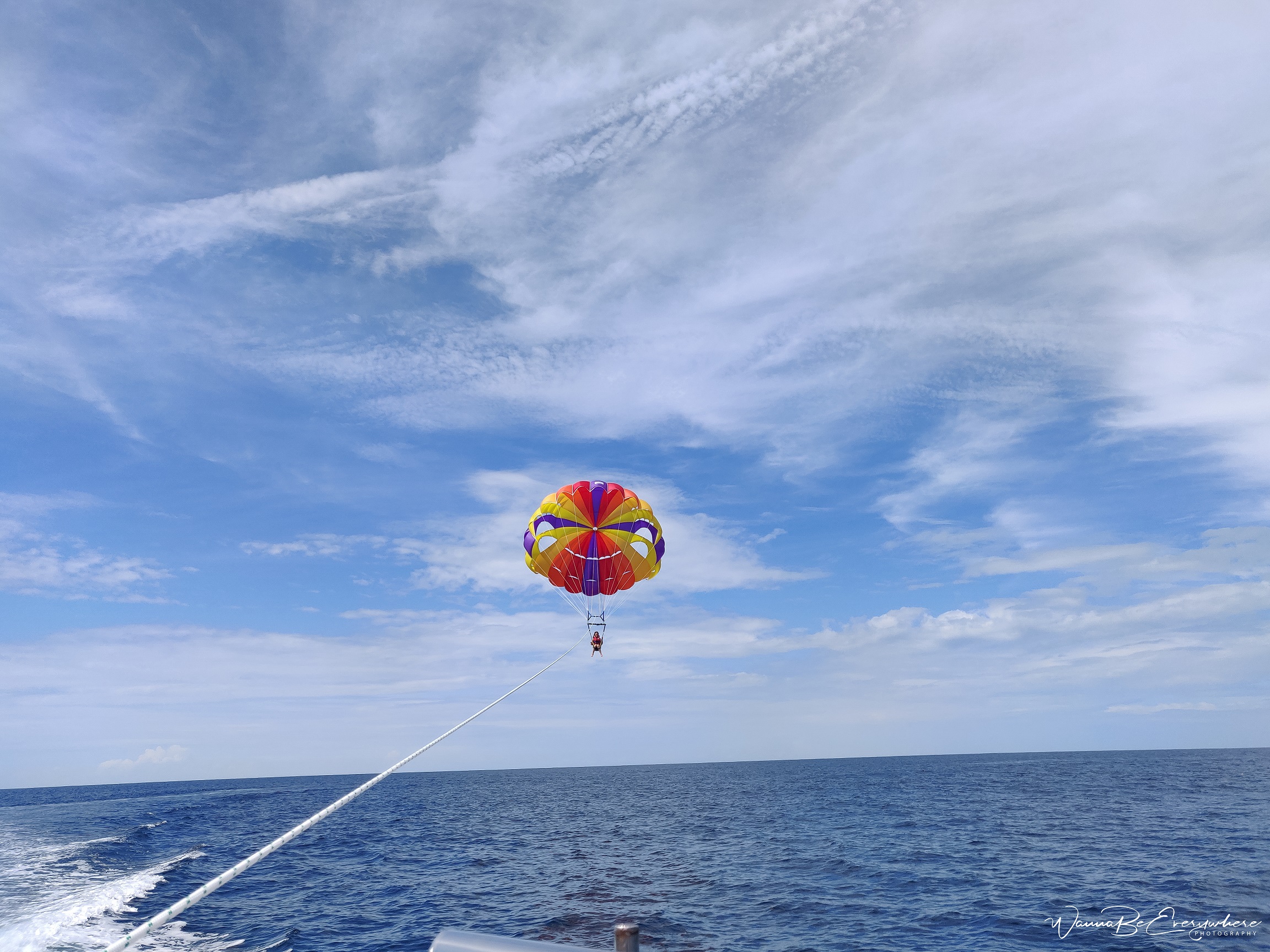 In between the snorkeling sessions we had some time off, we could either chill out on the beach or do some activities: zipline between islands, parachute behind the boat, scooters. I ended up doing parachute, and it was amazing!