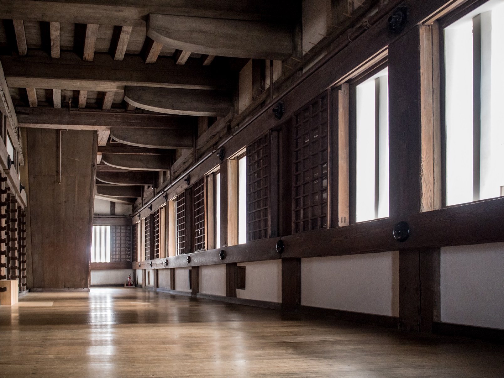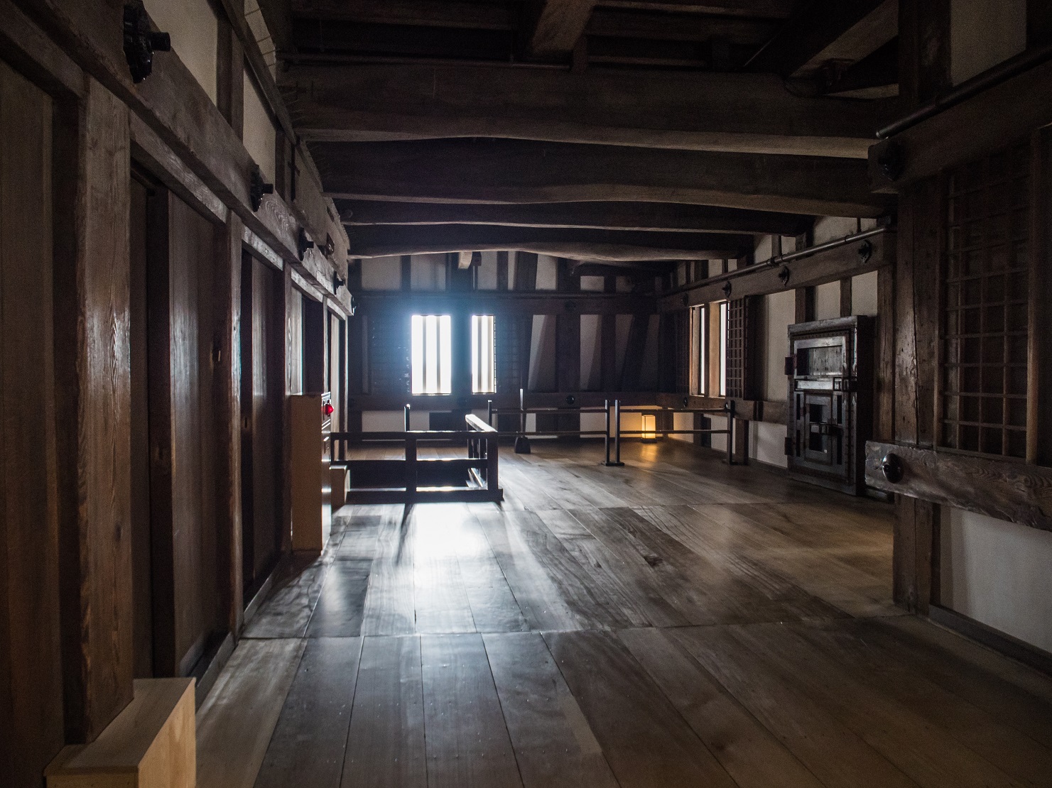 When you get an admission ticket, you can wander around the castle grounds and go into the castle. To be honest, there is not much to see inside it, thus I was a bit disappointed. You can see its wooden structure, and when you get to the last level, you can see the magnificent panorama of the Himeji castle grounds and the surrounding city. There is not much furniture inside, so it is kind of empty.