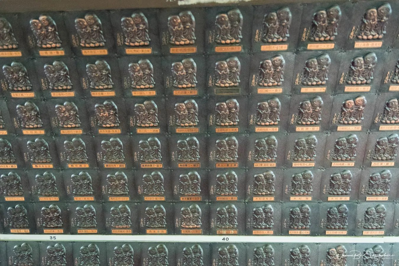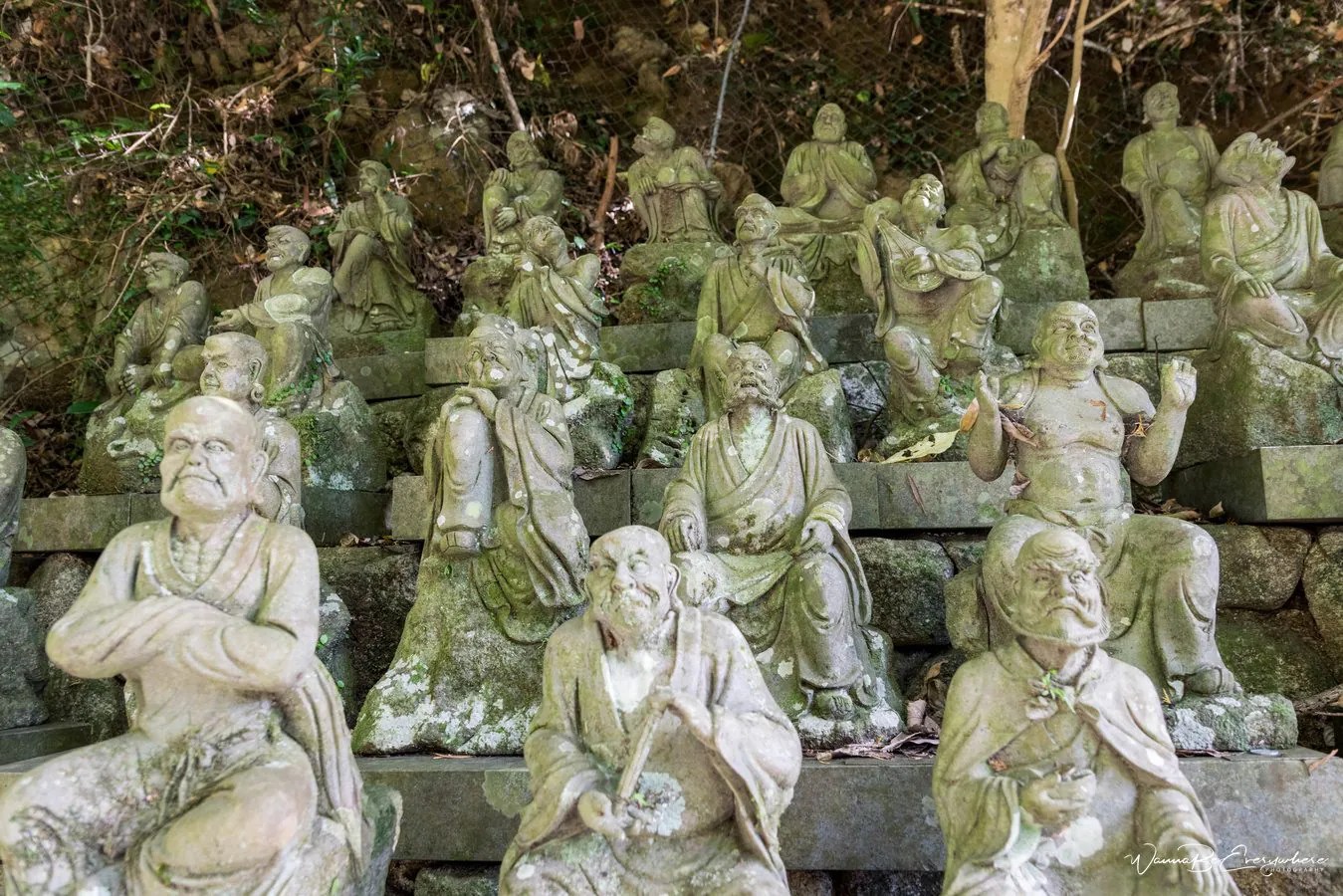 Except for the giant Buddha, the temple scattered on the hillside has a lot of other things to offer. Take a walk through the forest and discover many smaller shrines, small waterfalls, red Tori gates, and picturesque forest paths. Check out the statue of Fudou Myouou, a Buddhist deity, and hundreds of tiny figures representing Buddha’s disciples. There is a belief that by visiting the temple you can improve your luck, so who knows, maybe I will win some lottery 🙂 There is even a spot near the Buddha where you can buy feathered darts to throw into pots to get good fortune.