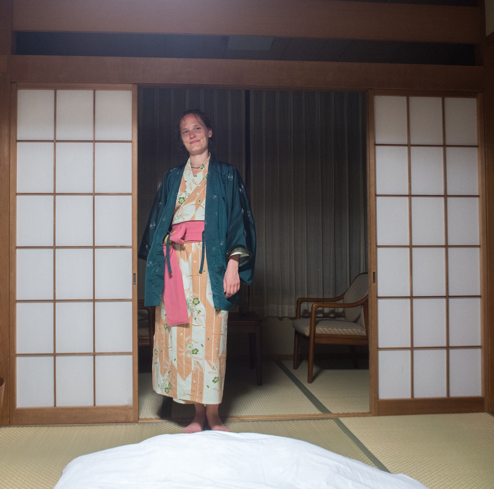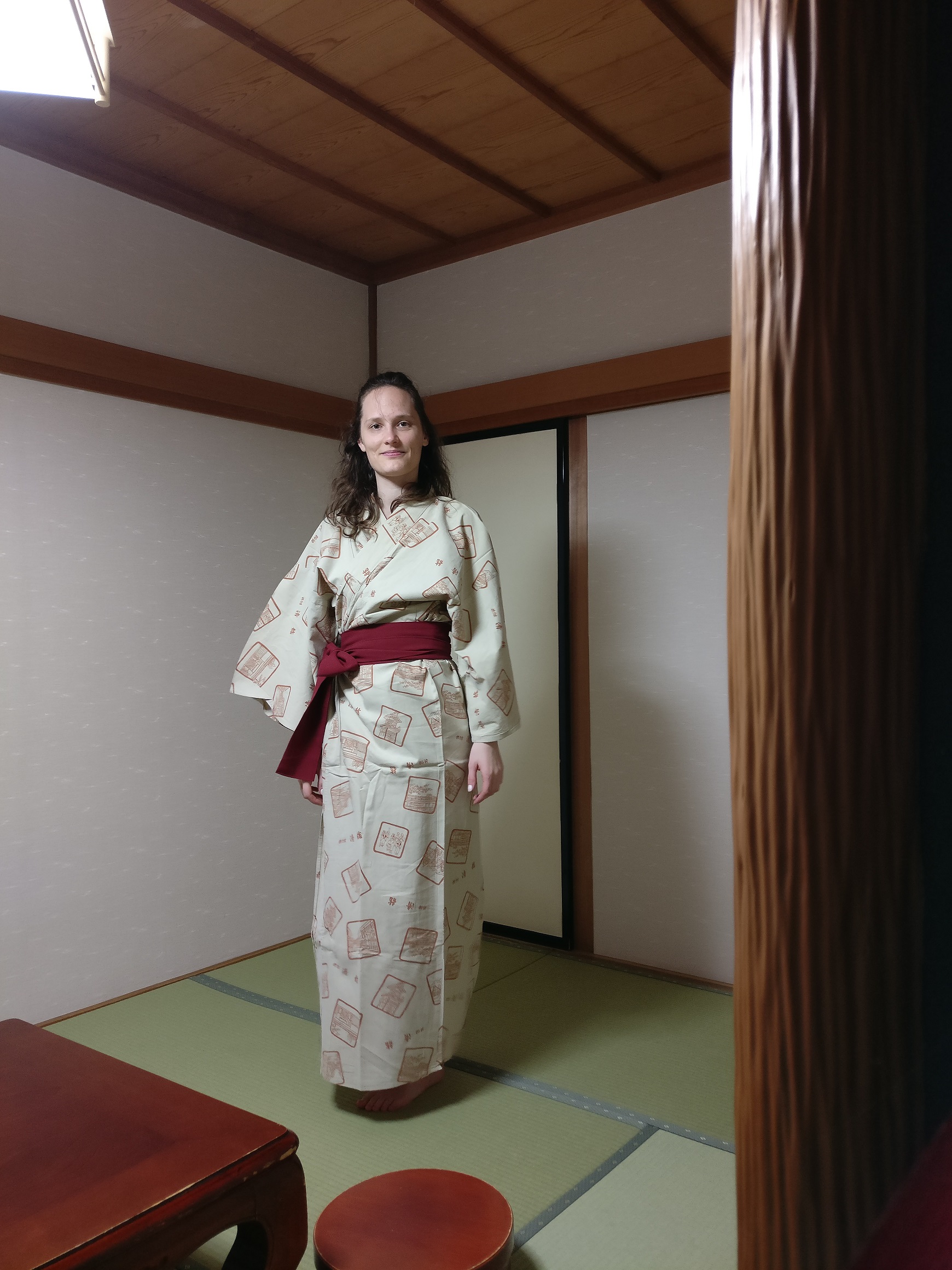 In the room, you will find a yukata – a cotton casual kimono that you can use during your stay. You can wear it during dinner and breakfast, while going to the baths and for sleeping, as a pajama. It was quite weird at the beginning seeing all the hotel guests walking in it through the corridors 😀 But I got used to it quite fast and it was super comfortable.
