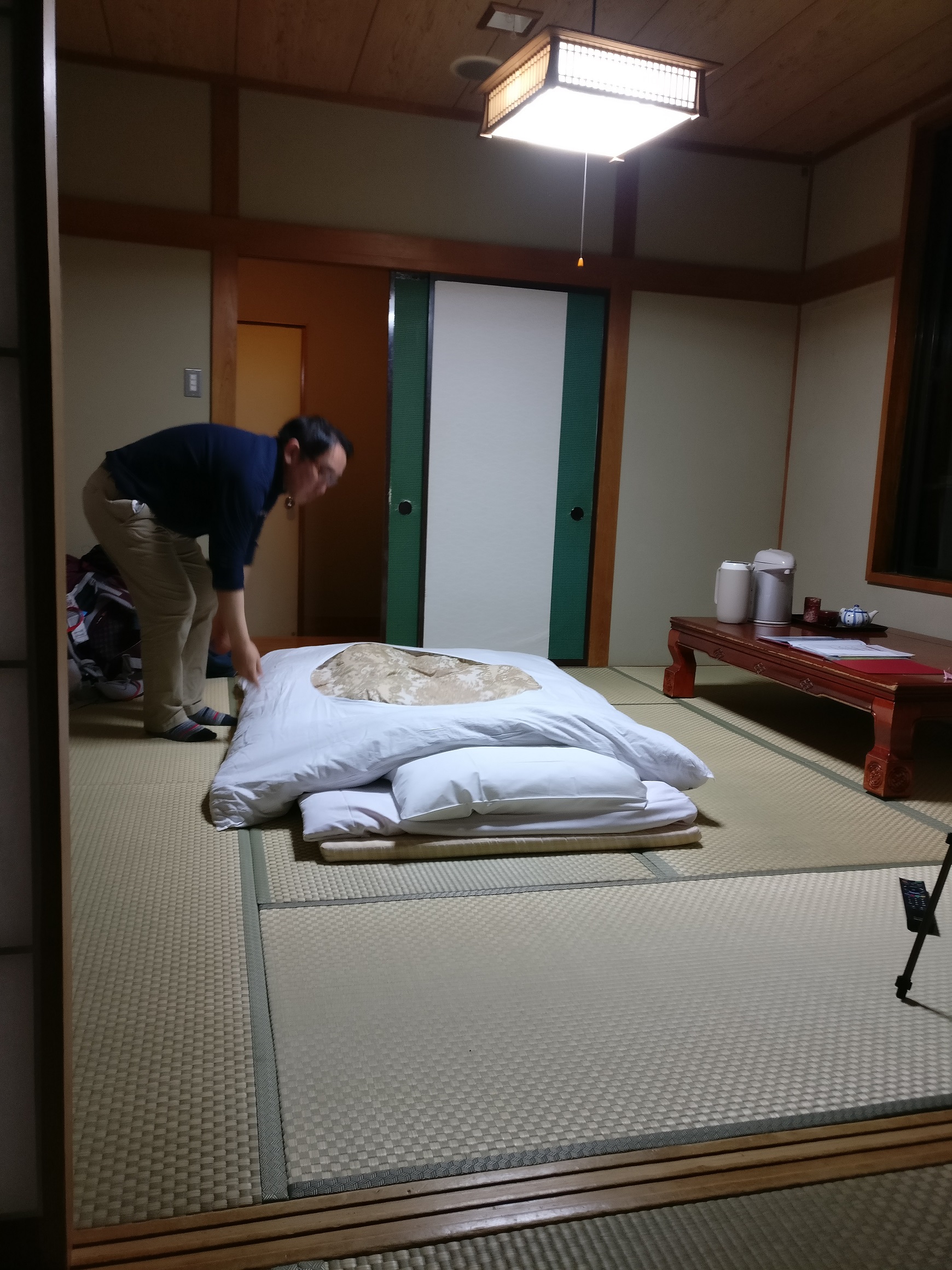 Ryokan is a traditional Japanese inn where you would sleep in a futon (kind of bed) on tatami mats (reed floor matting). It is quite an experience but there are couples of things to remember.