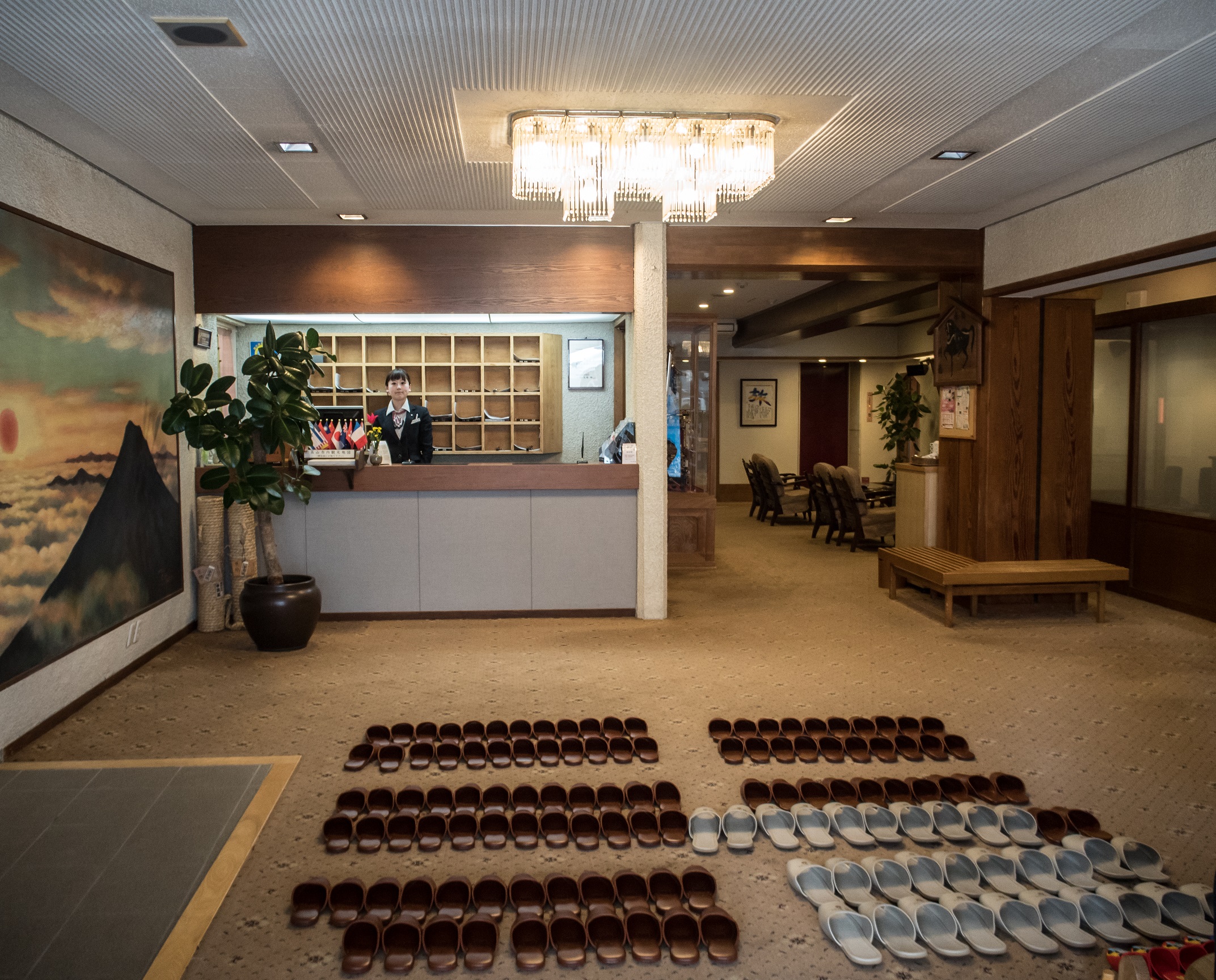 In most ryokans, you have to take off your shoes when entering a lobby in the common area. You get slippers you can wear while being inside that you should use.
