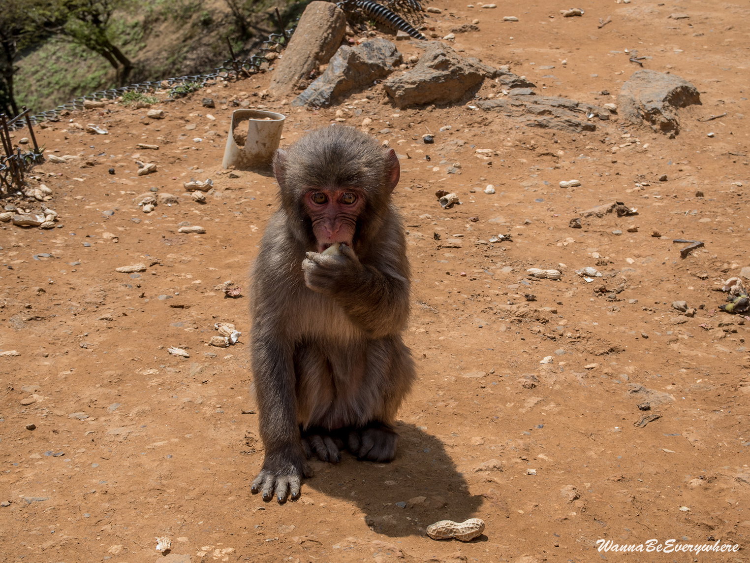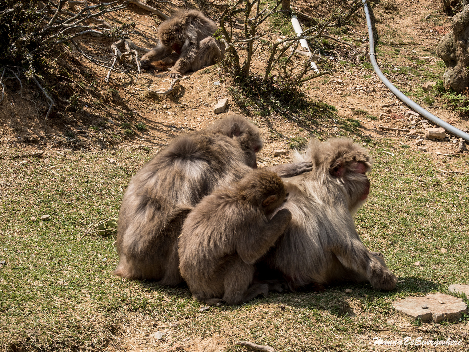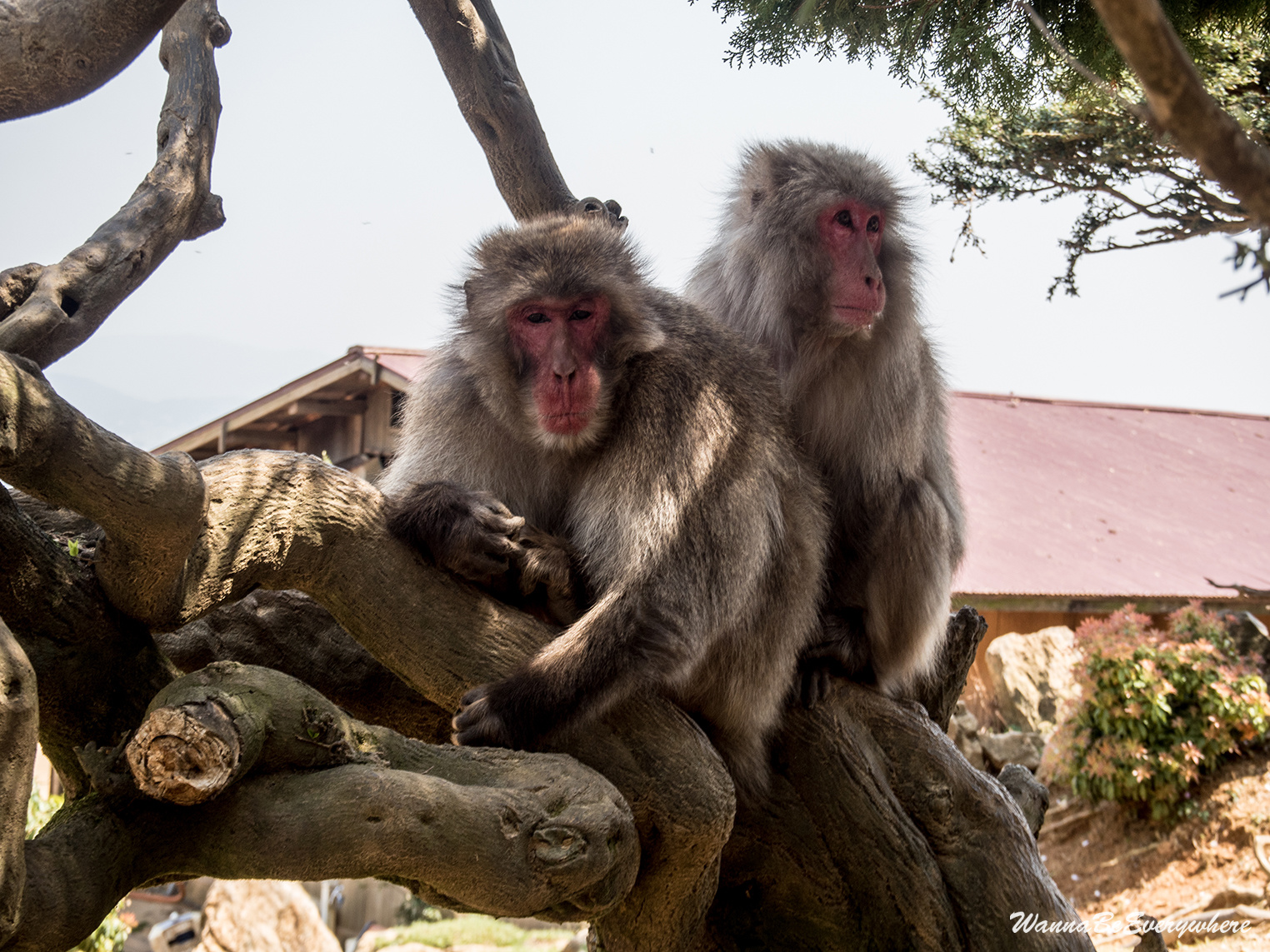 Monkey park was one of the places I wanted to see while in Japan. The park is located on a mountainside, and it takes only around 20 minutes to hike up the hill. On top, you can see a lot of Japanese macaques – snow monkeys. They roam freely in the park, but they are not domesticated. Many signs are saying that you should not stare at them or feed them as they might attack. There is a special hut, where visitors can go into and buy some peanuts or bananas and then feed them to the monkeys through the bars. But it is important to remember that those are wild animals, not pets.