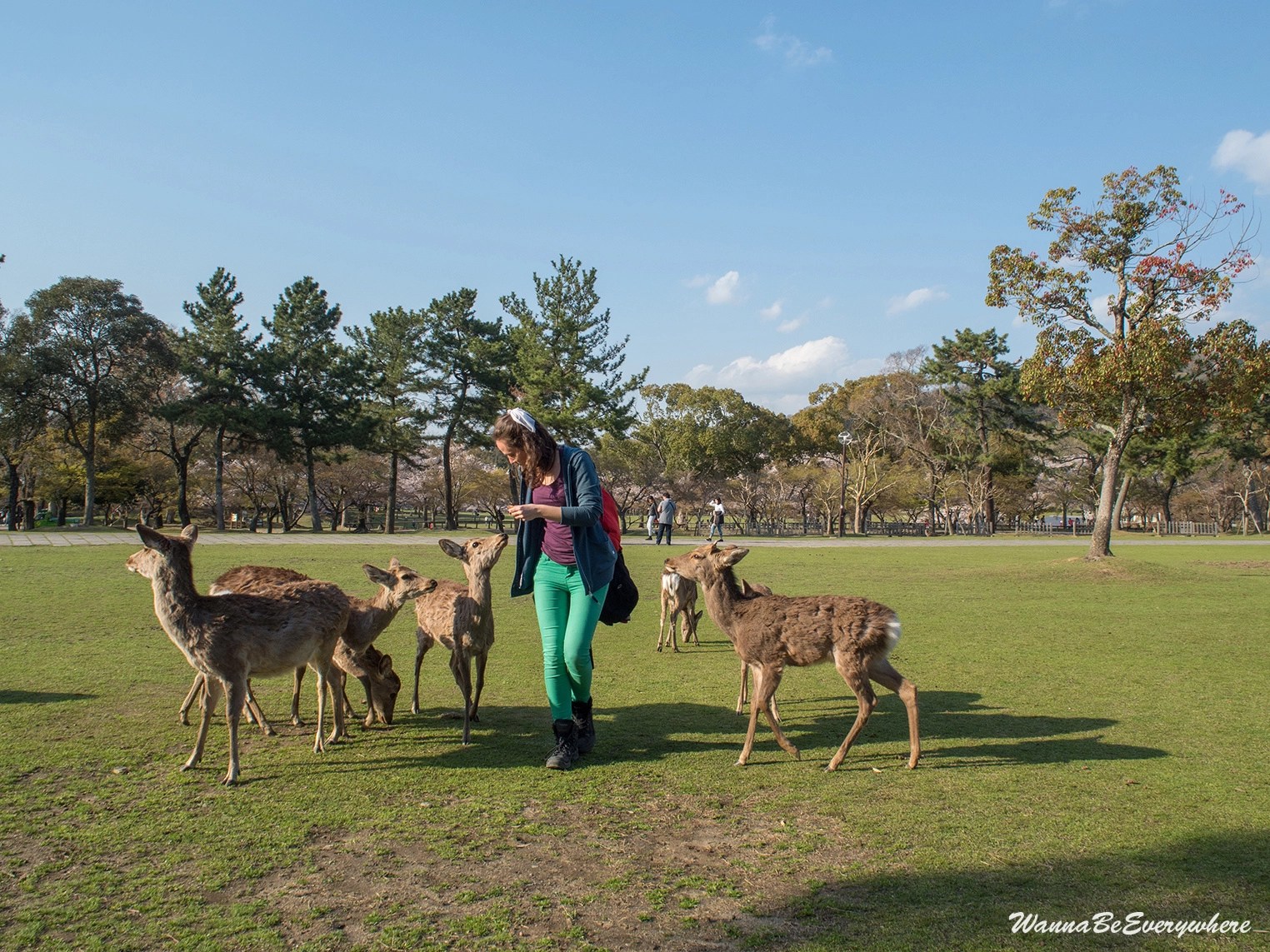 Deer are only allowed to eat those special crackers. In many places, you could buy them just for 150 ¥. The downside of it was that the second they noticed I had food in my hands, I got instantly surrounded by the whole pack until they ate it all. Funnily enough, deer did not believe I do not have more. Not until I showed them both hands empty 😀 Then they just went away!