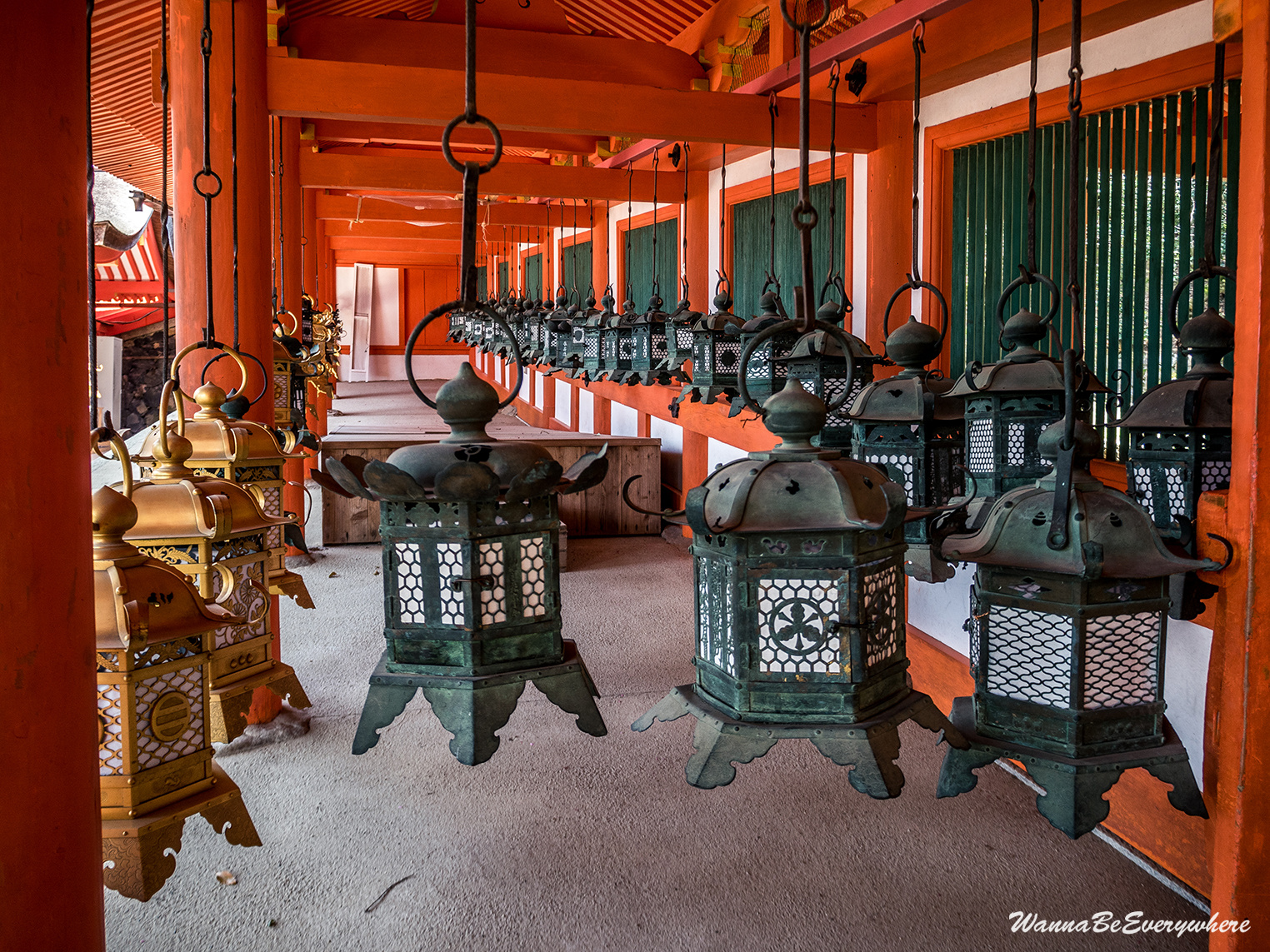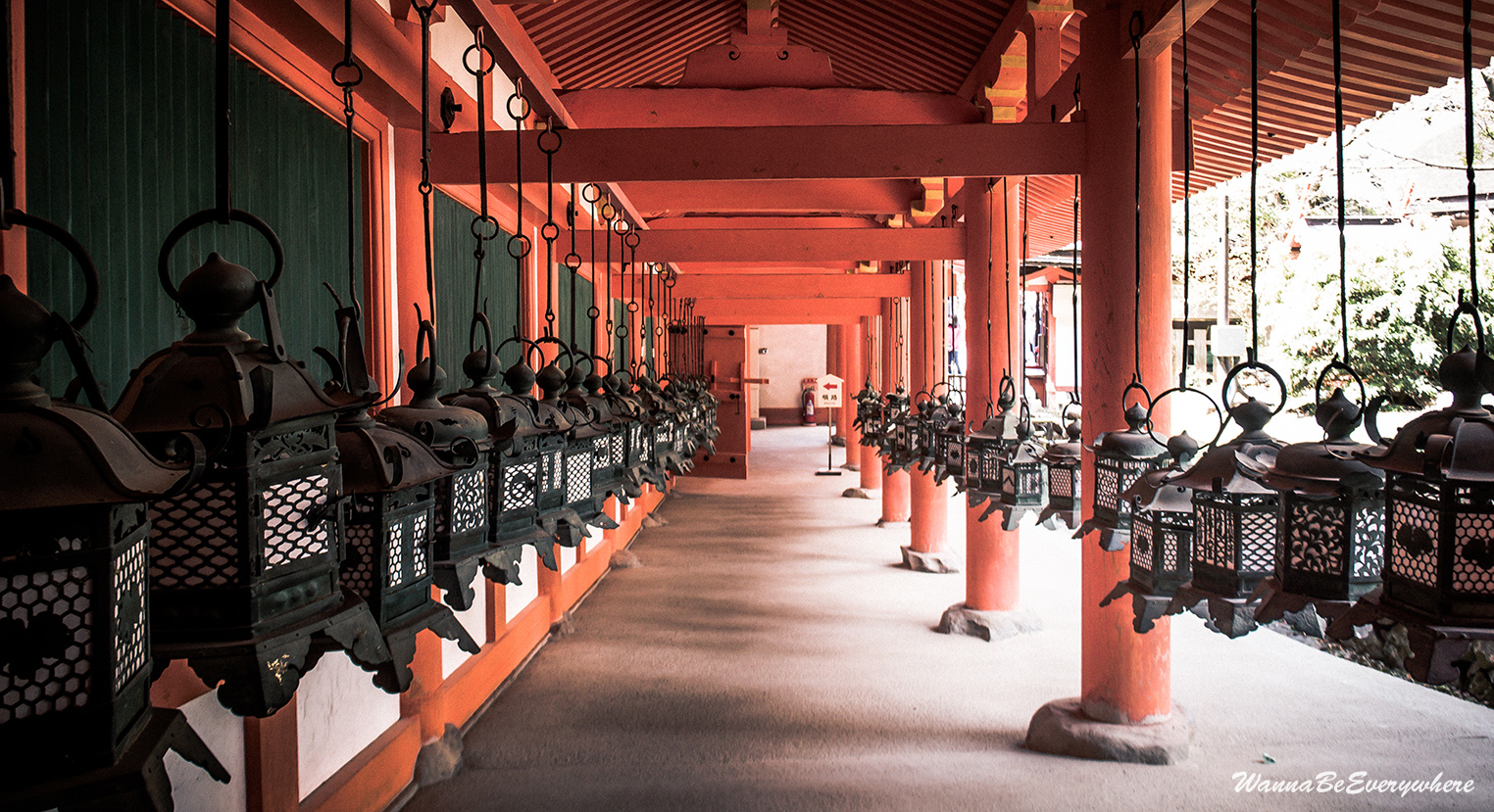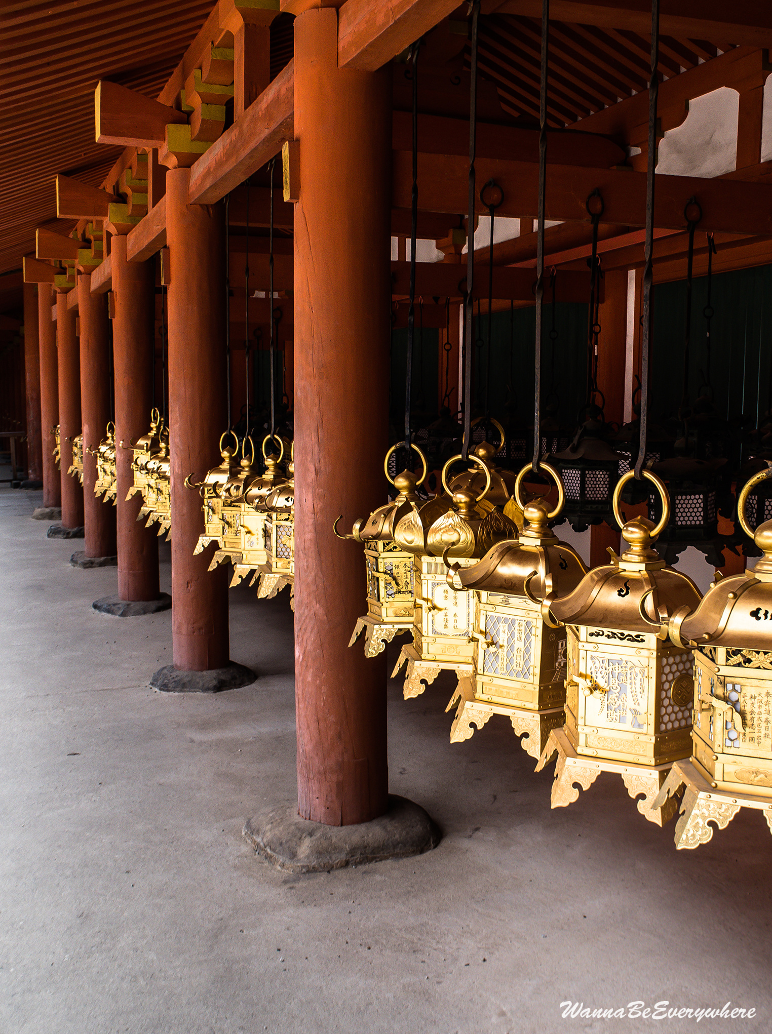 A small hike up the hill will reward you with this impressive shrine. Kasuga – Taisha is known for hundreds of lanterns donated by worshipers. Already while approaching the shrine through the forest, I was surrounded by many stone lanterns. And cute deers, trying to get the cookies from me 🙂 Upon entering the grounds, I was blown away. I discovered hundreds of bronze laters all around, surrounding the temple grounds. It was such a great sight for pictures!!