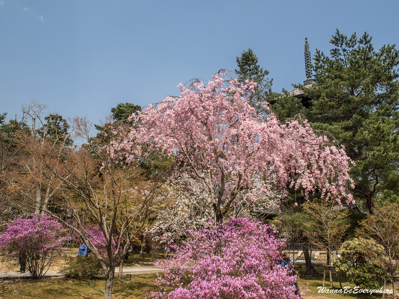 Ninnaji Temple is listed as a UNESCO World Heritage Site. It is a Buddist temple founded by the emperor in 888. It is great to visit it during the cherry season as there is a grove of locally cultivated, late-blooming Omuro cherries