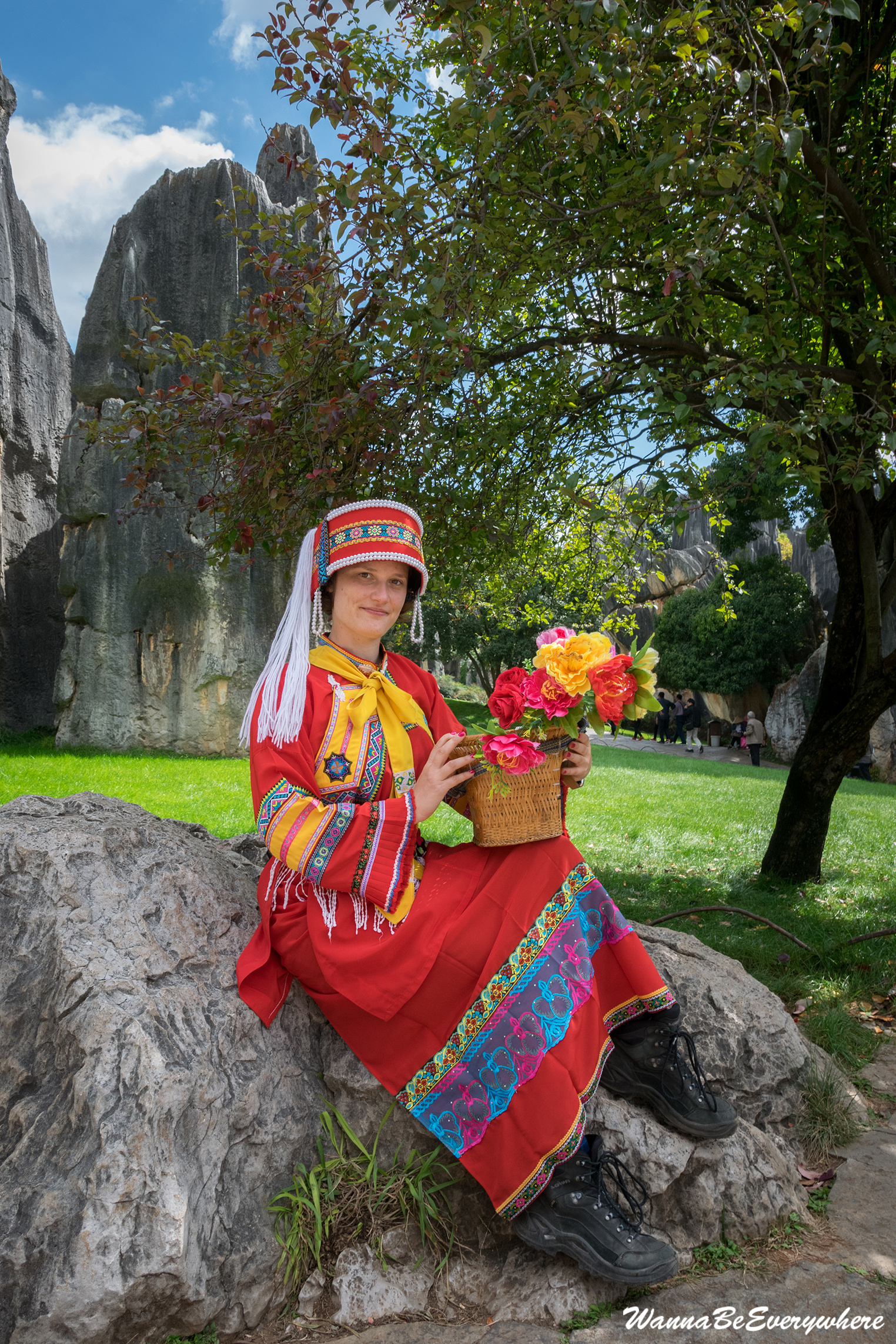 The cool thing to try is to rent a costume from the Sani ethnic minority group and take pictures in it. It costs only 10 ¥, and it is a lot of fun. Because I am European and decided to take photos wearing the costume I became local celebrity:D Everyone wanted to take pictures with me, suddenly I was more popular than the rocks 🙂
